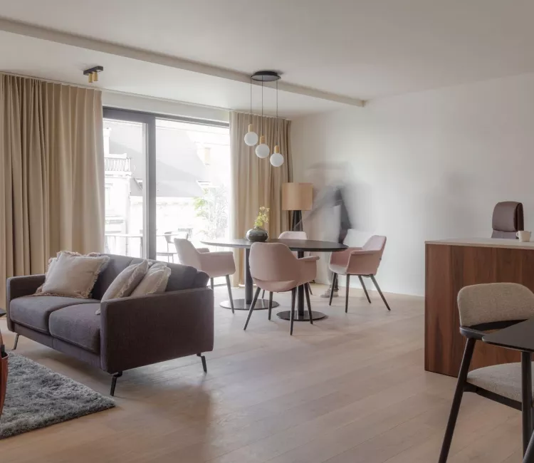 Aldea’s Residentie Beaux-Arts in Ghent combines a high-quality care hotel with care apartments. Studio M advised the (interior) architect, project manager(s) and client in the concept development and elaboration of the entrance hall, lobby, multi-purpose room and living areas, the library, the outdoor areas and the restaurant. Attention was also paid to the rooms and assisted living flats. They are all different in layout and have a terrace overlooking the historic heart of Ghent.